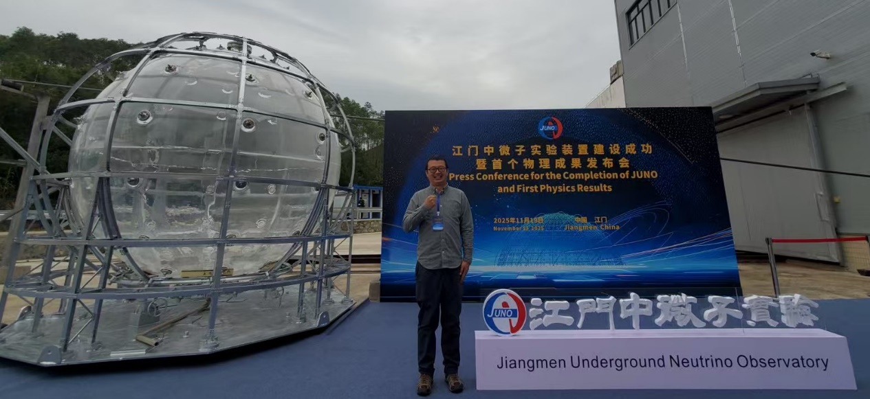 江门中微子实验(JUNO)于 2025 年 8 月 26 日正式运行,并于 11 月 19 日发布首批物理成果,成功实现中微子振荡参数 θ₁₂ 与 Δm²₁₂ 的全球最高精度测量,标志着中微子物理研究进入精细测量的新阶段。清华大学作为江门中微子实验的创始单位之一,在探测器设计与建造过程中发挥了关键作用。龚光华老师负责研制探测器时钟与触发系统,董建蒙博士担任探测器联调组成员,为探测器的顺利运行提供了重要保障。续本达老师领导实验的模拟检验与数据生成工作,开发了波形分析与事例重建算法,并参与了光电倍增管(PMT)和电子学系统的集成测试。在首批物理成果中,续本达老师还担任了三个独立分析组的联系人之一。清华大学高能物理中心中微子团队凭借实验设计、系统研制与数据分析优势,为JUNO建成、运行及成果产出提供核心支撑,未来将继续助力中微子质量顺序测定与新物理探索。